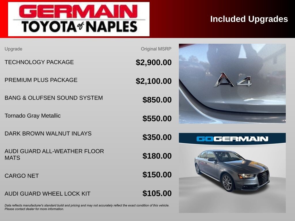 Audi Cuvee Silver Metallic 2015 A4 2.0T Premium Plus quattro, Local Trade In. 4D Sedan 2.0L 4-Cylinder TFSI DOHC 8-Speed Automatic with Tiptronic quattro