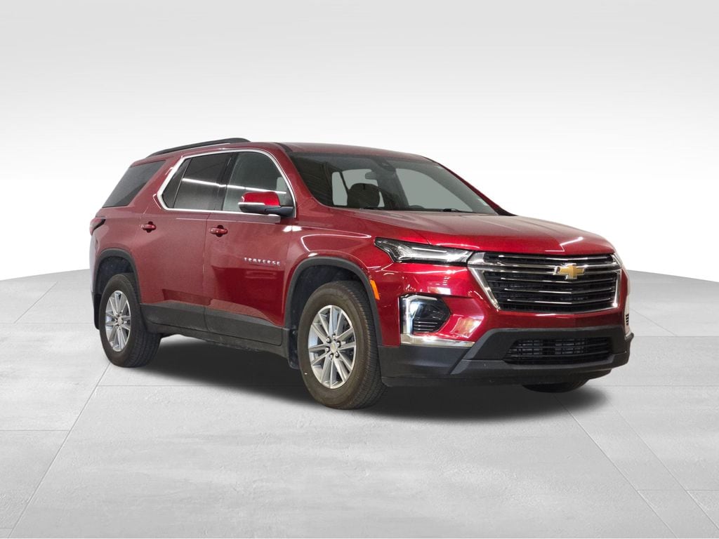2023 Radiant Red Tintcoat Chevrolet Traverse LT 3.6L V6 SIDI VVT FWD 1st & 2nd Row All-Weather Floor Liner (LPO), 2-Way Manual Front Passenger Seat Adjuster, 3.49 Axle Ratio, 3rd Row All-Weather Floor Liner (LPO), 3rd row seats: split-bench, 4-Wheel Disc Brakes, 4.2" Multi-Color Enhanced Driver Instrument Display, 6 Speakers, 6-Speaker Audio System Feature, 8-Way Power Driver Seat Adjuster, ABS brakes, Air Conditioning, Alloy wheels, AM/FM radio: SiriusXM, Apple CarPlay/Android Auto, Auto High-beam Headlights, Automatic temperature control, Black Roof Rails, Brake assist, Bumpers: body-color, Compass, Convenience & Driver Confidence Package, Custom Molded Front & Rear Splash Guards (LPO), Delay-off headlights, Driver door bin, Driver vanity mirror, Dual front impact airbags, Dual front side impact airbags, Electronic Stability Control, Emergency communication system, Exterior Parking Camera Rear, Floor Liner Package (LPO), Four wheel independent suspension, Front anti-roll bar, Front Bucket Seats, Front Center Armrest, Front dual zone A/C, Front reading lights, Fully automatic headlights, Heated door mirrors, Heated Driver & Front Passenger Seats, Illuminated entry, Integrated Cargo Liner (LPO), Leather steering wheel, Low tire pressure warning, Not Equipped w/Rear Park Assist (060), Occupant sensing airbag, Outside temperature display, Overhead airbag, Overhead console, Panic alarm, Passenger door bin, Passenger vanity mirror, Power door mirrors, Power Driver Lumbar Control, Power driver seat, Power steering, Power windows, Preferred Equipment Group 1LT, Premium Cloth Seat Trim, Radio data system, Radio: Chevrolet Infotainment 3 Plus System, Radio: Chevrolet Infotainment System AM/FM Stereo, Rear air conditioning, Rear anti-roll bar, Rear Power Liftgate, Rear reading lights, Rear window defroster, Rear window wiper, Remote keyless entry, Remote Start, Security system, SiriusXM Radio, SiriusXM w/360L, Speed control, Speed-sensing steering, Spoiler, Steering wheel mounted audio controls, Tachometer, Telescoping steering wheel, Tilt steering wheel, Traction control, Trip computer, Turn signal indicator mirrors, Universal Home Remote, Variably intermittent wipers, Voltmeter, Wheels: 18" Bright Silver-Painted Aluminum.