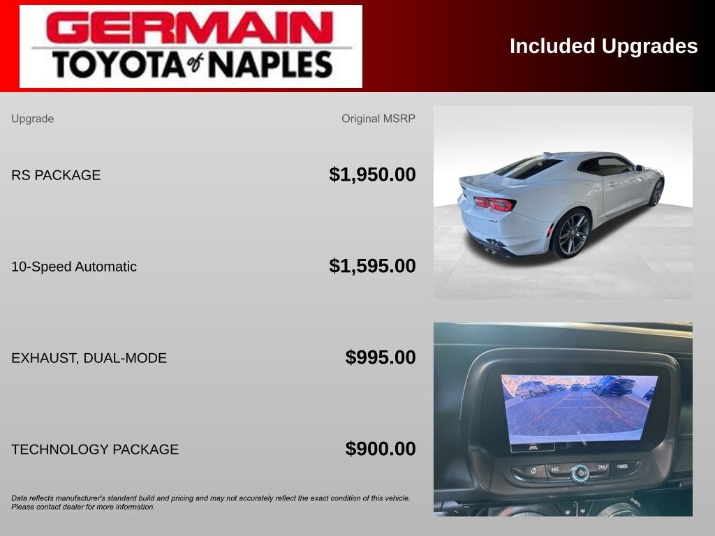 One Owner, Local Trade, Clean Carfax, Apple CarPlay, Rear View Camera, Low Miles, Balance Of Factory Warranty, Service Records Available!, 6-Speaker Audio System Feature, Bluetooth® For Phone, Bose Premium 9-Speaker Audio System Feature, Dark Tint LED Tail Lamps, Decklid-Mounted Lip Spoiler, Preferred Equipment Group 1LT, Radio: Chevrolet Infotainment 3 Plus System, RS Package, SiriusXM w/360L, Technology Package, Wheels: 20" 5-Split Spoke Machined-Face Aluminum, 18" Silver-Painted Aluminum Wheels, 2.77 Rear Axle Ratio, 4-Wheel Disc Brakes, 6 Speakers, 6-Way Power Front Passenger Seat Adjuster, 8-Way Power Driver Seat Adjuster, ABS brakes, Air Conditioning, Alloy wheels, AM/FM radio: SiriusXM, Apple CarPlay/Android Auto, Automatic temperature control, Brake assist, Bumpers: body-color, Cloth Seat Trim, Compass, Delay-off headlights, Driver door bin, Driver vanity mirror, Dual front impact airbags, Dual front side impact airbags, Dual Mode Exhaust, Electronic Stability Control, Exterior Parking Camera Rear, Four wheel independent suspension, Front anti-roll bar, Front Bucket Seats, Front Center Armrest, Front reading lights, Front Sport Bucket Seats, Fully automatic headlights, Illuminated entry, Knee airbag, Leather Shift Knob, Low tire pressure warning, Occupant sensing airbag, Overhead airbag, Paddle-Shift Manual Controls, Panic alarm, Passenger door bin, Passenger vanity mirror, Power door mirrors, Power driver seat, Power passenger seat, Power steering, Power windows, Premium audio system: Chevrolet Infotainment System, Radio data system, Radio: Chevrolet Infotainment 3 System, Rear anti-roll bar, Rear window defroster, Remote keyless entry, Remote Vehicle Starter System, Security system, SiriusXM, Speed control, Speed-sensing steering, Steering wheel mounted audio controls, Tachometer, Telescoping steering wheel, Tilt steering wheel, Tire Inflation Kit, Traction control, Trip computer, Variably intermittent wipers, Voltmeter, 6-Speaker Audio System Feature, Bluetooth® For Phone, Bose Premium 9-Speaker Audio System Feature, Dark Tint LED Tail Lamps, Decklid-Mounted Lip Spoiler, Preferred Equipment Group 1LT, Radio: Chevrolet Infotainment 3 Plus System, RS Package, SiriusXM w/360L, Technology Package, Wheels: 20" 5-Split Spoke Machined-Face Aluminum.