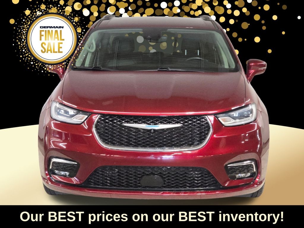 2021 Velvet Red Pearlcoat Chrysler Pacifica Hybrid Touring L 3.6L V6 FWD 1-Year Trial (Registration Required), 10.1" Touchscreen Display, 13 Alpine Speakers, 13 Speakers, 3.59 Axle Ratio, 360 Surround View Camera System, 3rd row seats: split-bench, 3rd Row USB Charge Port, 4-Wheel Disc Brakes, 4G LTE Wi-Fi Hot Spot, 506 Watt Amplifier, ABS brakes, Air Conditioning, Alloy wheels, AM/FM radio: SiriusXM 360L, Apple CarPlay, Apple CarPlay/Android Auto, Audio memory, Auto-dimming Rear-View mirror, Automatic temperature control, Black Seats, Brake assist, Bumpers: body-color, Compass, Delay-off headlights, Disassociated Touchscreen Display, Driver door bin, Driver vanity mirror, Driver's Seat Mounted Armrest, Dual front impact airbags, Dual front side impact airbags, Electronic Stability Control, Emergency communication system: Uconnect Access, Exterior Parking Camera Rear, Four wheel independent suspension, Front anti-roll bar, Front Bucket Seats, Front dual zone A/C, Front fog lights, Front Passenger Auto Advance N Return, Front reading lights, Fully automatic headlights, Garage door transmitter, Global Telematics Box Module (TBM), Google Android Auto, GPS Antenna Input, GPS Navigation, HD Radio, Heated door mirrors, Heated front seats, Heated steering wheel, Heavy Duty Suspension, Illuminated entry, Instrument Panel Anodized Silver Bezel, Integrated Active Noise Cancellation, Integrated Center Stack Radio, Integrated Voice Command w/Bluetooth, Knee airbag, Leather steering wheel, Liquid Titanium Accents, Low tire pressure warning, Memory seat, Navigation System, Occupant sensing airbag, Outside temperature display, Overhead airbag, Overhead console, Panic alarm, Parallel & Perp Park Assist w/Stop, ParkSense Front/Rear Park Assist w/Stop, Passenger door bin, Passenger seat mounted armrest, Passenger vanity mirror, Perforated Leather Trim Bucket Seats, Power Adjust 8-Way Front Passenger Seat, Power door mirrors, Power driver seat, Power Liftgate, Power Passenger Lumbar Adjust, Power passenger seat, Power steering, Power windows, Premium & Safety Sphere Group (DISC), Quick Order Package 2EL, Radio data system, Radio: Uconnect 5 Nav w/10.1" Display, Rain sensing wipers, Rear air conditioning, Rear reading lights, Rear window defroster, Rear window wiper, Reclining 3rd row seat, Remote keyless entry, Roof rack, Security system, SiriusXM Guardian - Included Trial (B), SiriusXM Satellite Radio, SiriusXM w/360L, Speed control, Split folding rear seat, Spoiler, Steering wheel mounted audio controls, Tachometer, Telescoping steering wheel, Tilt steering wheel, Traction control, Trip computer, Turn signal indicator mirrors, USB Host Flip, Variably intermittent wipers, Voltmeter, Wheels: 17" x 7.0" Diamond Cut w/Painted Pockets.