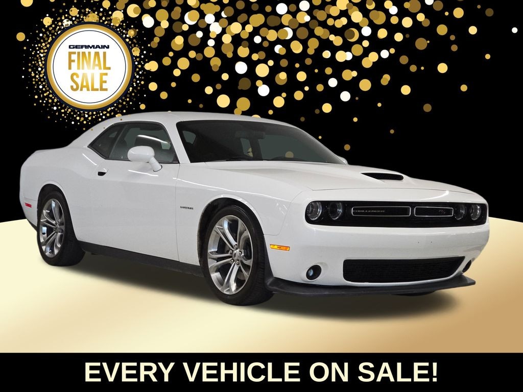 2021 White Knuckle Clearcoat Dodge Challenger R/T HEMI 5.7L V8 Multi Displacement VVT RWD 230MM Rear Axle, 3.90 Rear Axle Ratio, 4-Wheel Disc Brakes, 6 Speakers, ABS brakes, Air Conditioning, Alloy wheels, AM/FM radio, Anti-whiplash front head restraints, Apple CarPlay, Apple CarPlay/Android Auto, Auto-dimming Rear-View mirror, Automatic temperature control, Brake assist, Bumpers: body-color, Compass, Delay-off headlights, Driver door bin, Driver vanity mirror, Dual front impact airbags, Dual front side impact airbags, Electronic Stability Control, Four wheel independent suspension, Front anti-roll bar, Front Bucket Seats, Front Center Armrest, Front dual zone A/C, Front fog lights, Front License Plate Bracket, Front reading lights, Fully automatic headlights, Garage door transmitter, Google Android Auto, GPS Antenna Input, Heated door mirrors, Houndstooth Cloth Performance Seats, Illuminated entry, Integrated Center Stack Radio, Integrated Voice Command w/Bluetooth, Leather Shift Knob, Low tire pressure warning, Media Hub (2 USB, AUX), Outside temperature display, Overhead airbag, Overhead console, Panic alarm, ParkView Rear Back-Up Camera, Passenger door bin, Passenger vanity mirror, Power door mirrors, Power driver seat, Power steering, Power windows, Quick Order Package 28H, Radio data system, Radio: Uconnect 4 w/7" Display, Rear anti-roll bar, Rear reading lights, Rear seat center armrest, Rear window defroster, Remote keyless entry, Security system, Speed control, Speed-sensing steering, Split folding rear seat, Spoiler, Sport steering wheel, Steering wheel mounted audio controls, Tachometer, Telescoping steering wheel, Tilt steering wheel, Traction control, Trip computer, USB Host Flip, Variably intermittent wipers, Wheels: 20" x 8" Satin Carbon Aluminum.