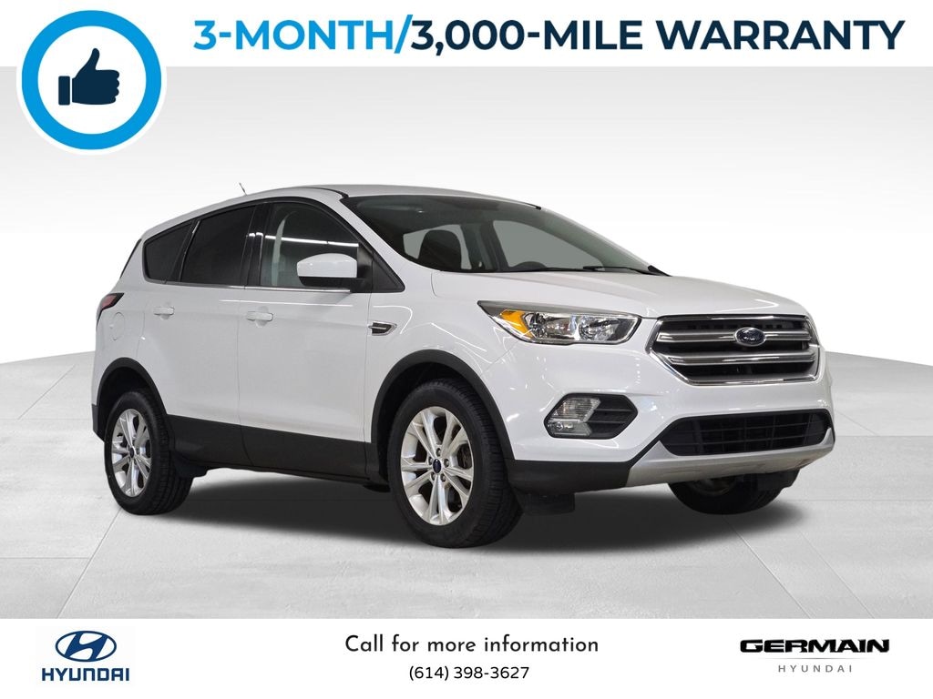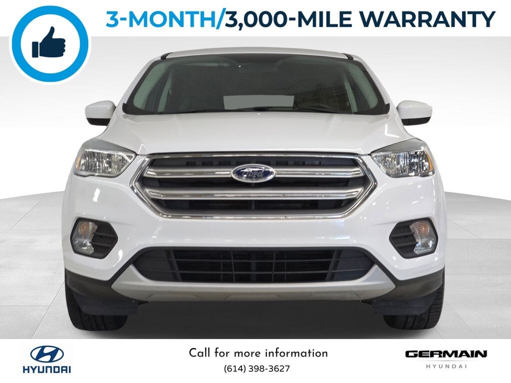2017 Oxford White Ford Escape SE 1.5L EcoBoost FWD 3.21 Axle Ratio, 4-Wheel Disc Brakes, 6 Speakers, ABS brakes, Air Conditioning, Alloy wheels, AM/FM radio: SiriusXM, Automatic temperature control, Brake assist, Bumpers: body-color, CD player, Compass, Delay-off headlights, Driver door bin, Driver vanity mirror, Dual front impact airbags, Dual front side impact airbags, Electronic Stability Control, Emergency communication system: 911 Assist, Equipment Group 200A, Exterior Parking Camera Rear, Four wheel independent suspension, Front anti-roll bar, Front Bucket Seats, Front Center Armrest, Front dual zone A/C, Front fog lights, Front reading lights, Fully automatic headlights, Illuminated entry, Knee airbag, Low tire pressure warning, Occupant sensing airbag, Outside temperature display, Overhead airbag, Overhead console, Panic alarm, Passenger door bin, Passenger vanity mirror, Power door mirrors, Power driver seat, Power steering, Power windows, Radio data system, Radio: AM/FM Single CD/MP3, Rear anti-roll bar, Rear seat center armrest, Rear window defroster, Rear window wiper, Remote keyless entry, Speed control, Speed-sensing steering, Split folding rear seat, Steering wheel mounted audio controls, SYNC Communications & Entertainment System, Tachometer, Telescoping steering wheel, Tilt steering wheel, Traction control, Trip computer, Unique Cloth Buckets w/60/40 Split Rear Seat, Variably intermittent wipers, Wheels: 17" Sparkle Silver Painted Aluminum.