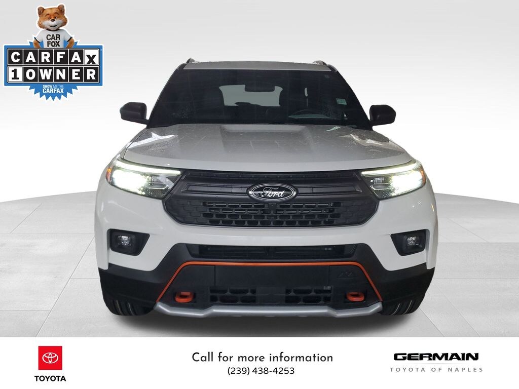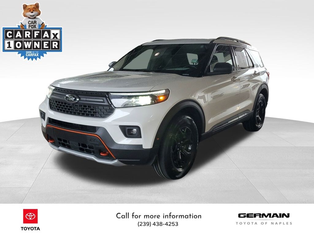 Ford Star White Metallic Tri-Coat 2022 Explorer Timberline Local Trade In, Carfax 1-Owner. 4D Sport Utility 2.3L EcoBoost I-4 10-Speed Automatic 4WD