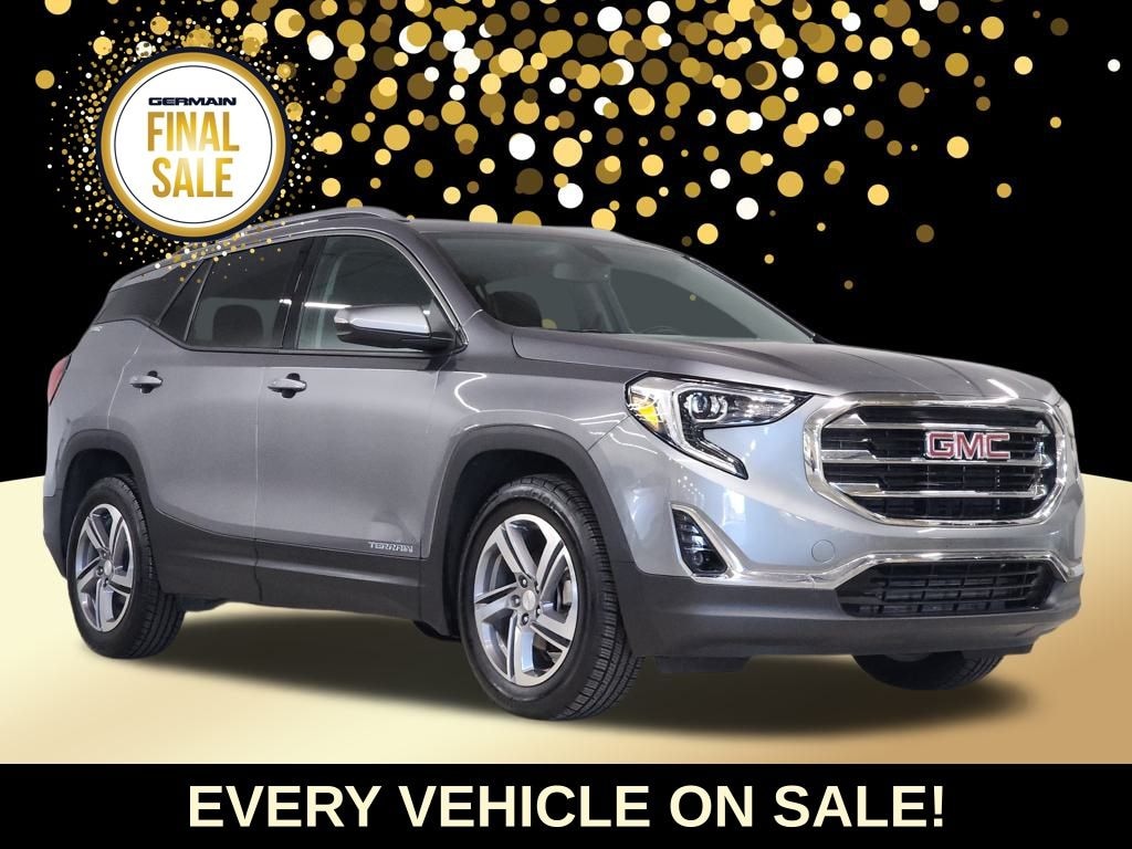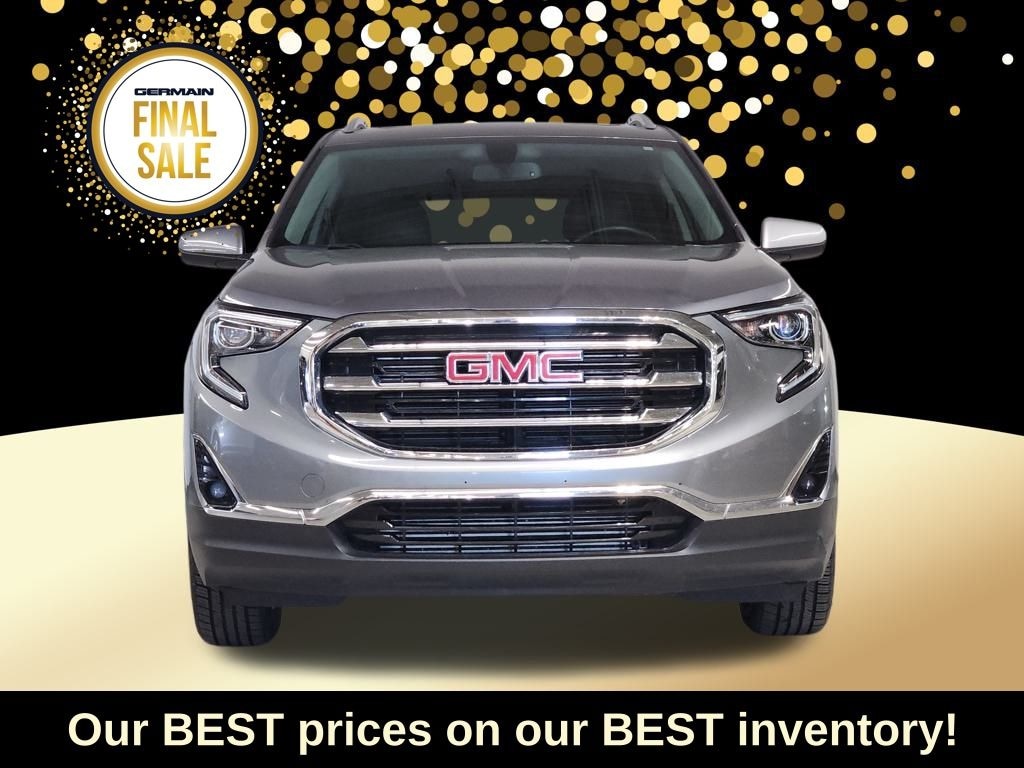 2018 Satin Steel Metallic GMC Terrain SLT 1.5L DOHC FWD 2 USB Data Ports, 2 USB Data Ports w/Auxiliary Input Jack, 3.47 Axle Ratio, 4-Way Manual Front Passenger Seat, 4-Wheel Disc Brakes, 6 Speakers, 6-Speaker Audio System Feature, 6-Way Power Front Passenger Seat, 8-Way Power Driver Seat Adjuster, ABS brakes, Air Conditioning, All-Weather Cargo Mat (LPO), All-Weather Floor Mats, Alloy wheels, AM/FM radio: SiriusXM, Apple CarPlay/Android Auto, Auto-dimming door mirrors, Auto-dimming Rear-View mirror, Automatic temperature control, Bluetooth® For Phone, Brake assist, Bumpers: body-color, Compass, Delay-off headlights, Driver & Front Passenger Heated Seats, Driver Alert Package I, Driver door bin, Driver vanity mirror, Dual front impact airbags, Dual front side impact airbags, Electronic Stability Control, Emergency communication system: OnStar Guidance, Exterior Parking Camera Rear, Four wheel independent suspension, Front anti-roll bar, Front Bucket Seats, Front Center Armrest, Front dual zone A/C, Front fog lights, Front Passenger 2-Way Power Lumbar, Front reading lights, Fully automatic headlights, Hands-Free Rear Power Programmable Liftgate, Heated door mirrors, Heated front seats, Heated Steering Wheel, High-Intensity Discharge Headlights, Illuminated entry, Interior Protection Package (LPO), Lane Change Alert w/Side Blind Zone Alert, Low tire pressure warning, Memory Package, Occupant sensing airbag, Outside temperature display, Overhead airbag, Overhead console, Panic alarm, Passenger door bin, Passenger vanity mirror, Perforated Leather-Appointed Seat Trim, Power door mirrors, Power Driver Lumbar Control, Power driver seat, Power steering, Power windows, Preferred Equipment Group 4SA, Preferred Package, Radio data system, Radio: GMC Infotainment Audio System w/8" Display, Rear anti-roll bar, Rear Cross-Traffic Alert, Rear Park Assist & Safety Alert Seat, Rear seat center armrest, Rear window defroster, Rear window wiper, Remote keyless entry, Roof rack: rails only, SD Card Reader, Security system, SiriusXM Satellite Radio, Skyscape Power Sunroof w/Power Sunscreen, Speed control, Speed-sensing steering, Split folding rear seat, Spoiler, Steering wheel mounted audio controls, Tachometer, Telescoping steering wheel, Tilt steering wheel, Traction control, Trip computer, Turn signal indicator mirrors, Universal Home Remote, Variably intermittent wipers, Wheels: 18" x 7" Machined Aluminum w/Gray Accents.