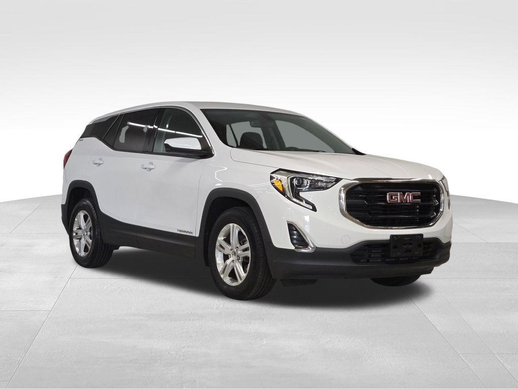 2019 Summit White GMC Terrain SLE 1.5L DOHC FWD 2 USB Data Ports w/Auxiliary Input Jack, 3.47 Axle Ratio, 4-Way Manual Driver's Seat, 4-Way Manual Front Passenger Seat, 4-Wheel Disc Brakes, 6 Speakers, 6-Speaker Audio System Feature, ABS brakes, Air Conditioning, Alloy wheels, AM/FM radio, Apple CarPlay/Android Auto, Auto-dimming Rear-View mirror, Bluetooth® For Phone, Brake assist, Bumpers: body-color, Compass, Delay-off headlights, Driver door bin, Driver vanity mirror, Dual front impact airbags, Dual front side impact airbags, Electronic Stability Control, Emergency communication system, Exterior Parking Camera Rear, Four wheel independent suspension, Front anti-roll bar, Front Bucket Seats, Front Center Armrest, Front reading lights, Fully automatic headlights, Heated door mirrors, High-Intensity Discharge Headlights, Illuminated entry, License Plate Front Mounting Package, Low tire pressure warning, Occupant sensing airbag, Outside temperature display, Overhead airbag, Overhead console, Panic alarm, Passenger door bin, Passenger vanity mirror, Power door mirrors, Power steering, Power windows, Preferred Equipment Group 3SA, Premium Cloth Seat Trim, Radio data system, Radio: GMC Infotainment Audio System w/7" Display, Rear anti-roll bar, Rear seat center armrest, Rear window defroster, Rear window wiper, Remote keyless entry, Security system, Speed control, Speed-sensing steering, Split folding rear seat, Spoiler, Steering wheel mounted audio controls, Tachometer, Telescoping steering wheel, Tilt steering wheel, Traction control, Trip computer, Variably intermittent wipers, Wheels: 17" x 7" Silver Painted Aluminum.