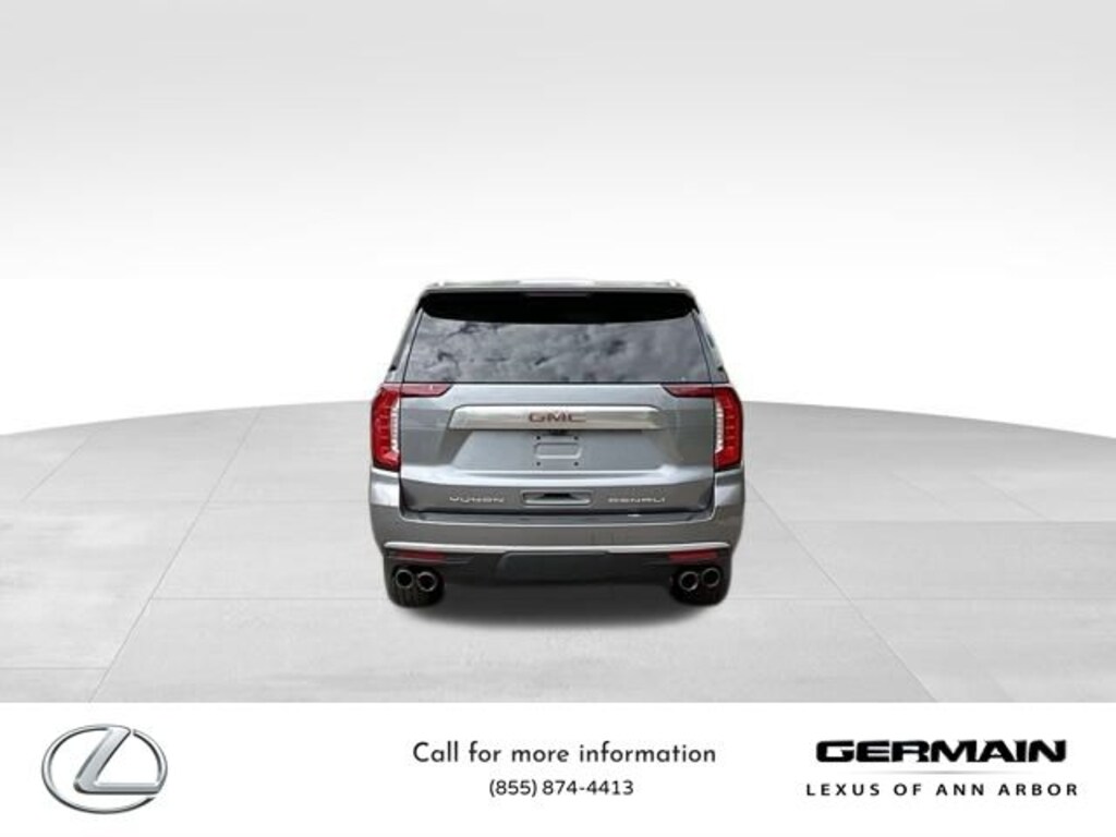 2021 GMC Yukon XL 4WD, 12-Way Power Seat Adjusters, 14 Speakers, 15" Diagonal Multi-Color Head-Up Display, 2 Presets For Outside Rearview Mirrors, 3.23 Rear Axle Ratio, 3rd Row 60/40 Power-Folding Split-Bench Seat, 3rd row seats: split-bench, 4-Wheel Disc Brakes, ABS brakes, Adaptive Cruise Control, Adaptive suspension, Advanced Security Package, Advanced Technology Package, Air Conditioning, All-Weather Floor Mats, Alloy wheels, AM/FM radio: SiriusXM with 360L, Apple CarPlay/Android Auto, Auto High-beam Headlights, Auto-dimming door mirrors, Auto-dimming Rear-View mirror, Auto-leveling suspension, Automatic Emergency Braking, Automatic temperature control, Bodyside moldings, Bose 14-Speaker Surround w/CenterPoint, Brake assist, Bright Front & Rear Door Sill Plates, Bumpers: body-color, Cargo Security Shade (LPO), Chrome Door Handles w/Body-Color Strip, Compass, Delay-off headlights, Denali Premium Package, Driver door bin, Driver vanity mirror, Dual Exhaust System, Dual front impact airbags, Dual front side impact airbags, Dual-Pane Panoramic Power Sunroof, Electronic Stability Control, Emergency communication system: OnStar and GMC connected services capable, Enhanced Automatic Emergency Braking, Floor Console, Following Distance Indicator, Forward Collision Alert, Four wheel independent suspension, Front & Rear Park Assist, Front anti-roll bar, Front Bucket Seats, Front Center Armrest, Front dual zone A/C, Front fog lights, Front Pedestrian Braking, Front reading lights, Fully automatic headlights, Galvano Bodyside Moldings, Garage door transmitter, Glass Breakage Sensor, Hands-Free Power Programmable Rear Liftgate, HD Radio, HD Surround Vision, Heads-Up Display, Heated & Ventilated Driver & Front Passenger Seats, Heated 2nd Row Outboard Position Seats, Heated Automatic Steering Wheel, Heated door mirrors, Heated Driver & Front Passenger Seats, Heated front seats, Heated rear seats, Heated steering wheel, Hill Descent Control, Illuminated entry, Inside Rear-View Auto-Dimming Mirror, Inside Rearview Auto-Dimming Rear Camera Mirror, IntelliBeam Automatic High Beam On/Off, Jet Black Interior Trim, Lane Change Alert w/Side Blind Zone Alert, Lane Keep Assist w/Lane Departure Warning, Leather steering wheel, Low tire pressure warning, Magnetic Ride Control Suspension, Memory seat, Navigation System, Occupant sensing airbag, Outside Heated Power-Adjustable Mirrors, Outside temperature display, Overhead airbag, Overhead console, Panic alarm, Passenger door bin, Passenger vanity mirror, Perforated Leather Seating Surfaces, Power door mirrors, Power driver seat, Power Liftgate, Power passenger seat, Power Release 2nd Row Bucket Seats, Power steering, Power Tilt & Telescopic Steering Column, Power windows, Power-Retractable Assist Steps, Preferred Equipment Group 5SA, Radio: AM/FM/SiriusXM w/Navigation, Rain sensing wipers, Rear air conditioning, Rear anti-roll bar, Rear Camera Mirror Washer, Rear Cross Traffic Alert, Rear Pedestrian Alert, Rear reading lights, Rear window defroster, Rear window wiper, Remote keyless entry, Roof rack: rails only, Safety Alert Seat, Security system, SiriusXM w/360L, Speed control, Speed-sensing steering, Split folding rear seat, Spoiler, Steering wheel memory, Steering wheel mounted audio controls, Tachometer, Telescoping steering wheel, Theft-Deterrent Alarm System, Tilt steering wheel, Traction control, Trip computer, Turn signal indicator mirrors, Universal Home Remote, Variably intermittent wipers, Vehicle Inclination Sensor, Vehicle Interior Movement Sensor, Ventilated front seats, Voltmeter, Wheel Locks, Wheels: 20" x 9" 6-Spoke Polished Aluminum, Wheels: 22" x 9" Bright Machined Aluminum, 4WD. 10-Speed Automatic with Overdrive EcoTec3 6.2L V8