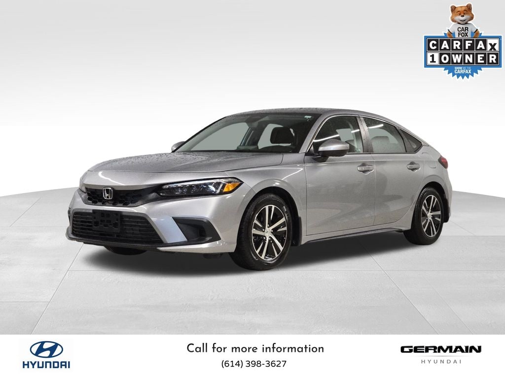 2023 Lunar Silver Metallic Honda Civic LX 2.0L I4 DOHC 16V FWD 16" Alloy Wheels, 4 Speakers, 4-Wheel Disc Brakes, ABS brakes, Adaptive Cruise Control: Adaptive Cruise Control (ACC) with Low-Speed Follow, Air Conditioning, Alloy wheels, AM/FM radio, Apple CarPlay/Android Auto, Auto High-beam Headlights, Automatic temperature control, Brake assist, Bumpers: body-color, Delay-off headlights, Driver door bin, Driver vanity mirror, Dual front impact airbags, Dual front side impact airbags, Electronic Stability Control, Emergency communication system: HondaLink, Exterior Parking Camera Rear, Fabric Seating Surfaces, Four wheel independent suspension, Front anti-roll bar, Front Bucket Seats, Front Center Armrest, Front reading lights, Fully automatic headlights, Illuminated entry, Knee airbag, Lane departure: Lane Keeping Assist System (LKAS) active, Low tire pressure warning, Occupant sensing airbag, Outside temperature display, Overhead airbag, Panic alarm, Passenger door bin, Passenger vanity mirror, Power door mirrors, Power steering, Power windows, Radio data system, Radio: 160-Watt Audio System, Rear anti-roll bar, Rear side impact airbag, Rear window defroster, Rear window wiper, Remote keyless entry, Security system, Speed control, Speed-sensing steering, Split folding rear seat, Steering wheel mounted audio controls, Tachometer, Telescoping steering wheel, Tilt steering wheel, Traction control, Trip computer, Voltmeter.