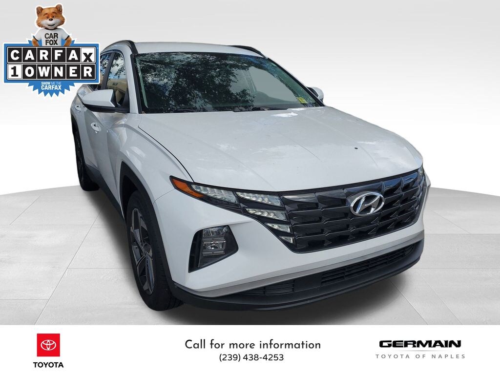Hyundai White Pearl 2024 Tucson SEL Carfax 1-Owner, Factory Warranty. 4D Sport Utility 2.5L I4 DGI DOHC 16V LEV3-SULEV30 187hp 8-Speed Automatic with SHIFTRONIC FWD
