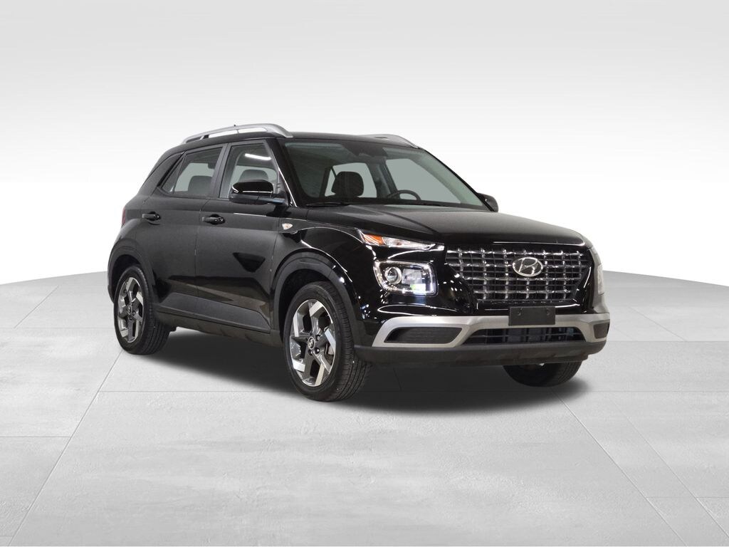 2024 Onyx Black Hyundai Venue SEL I4 FWD 4-Wheel Disc Brakes, 6 Speakers, 6.052 Axle Ratio, 6.5J x 17" Alloy Wheels, ABS brakes, Air Conditioning, Alloy wheels, AM/FM radio, Apple CarPlay & Android Auto, Auto High-beam Headlights, Automatic temperature control, Brake assist, Bumpers: body-color, Cargo Net, Cargo Tray, Carpeted Floor Mats, Cloth Seat Trim, Delay-off headlights, Driver door bin, Driver vanity mirror, Dual front impact airbags, Dual front side impact airbags, Electronic Stability Control, First Aid Kit, Front anti-roll bar, Front Bucket Seats, Front Center Armrest, Front reading lights, Front wheel independent suspension, Fully automatic headlights, Illuminated entry, Leather Shift Knob, Leather steering wheel, Low tire pressure warning, Occupant sensing airbag, Option Group 01, Outside temperature display, Overhead airbag, Overhead console, Panic alarm, Passenger door bin, Passenger vanity mirror, Power door mirrors, Power moonroof, Power steering, Power windows, Radio: AM/FM/HD Display Audio, Rear Seat Cup Holder, Rear window defroster, Rear window wiper, Remote keyless entry, Roof rack: rails only, Security system, Speed control, Speed-sensing steering, Split folding rear seat, Spoiler, Steering wheel mounted audio controls, Tachometer, Telescoping steering wheel, Tilt steering wheel, Traction control, Trip computer, Variably intermittent wipers, Wheel Locks.