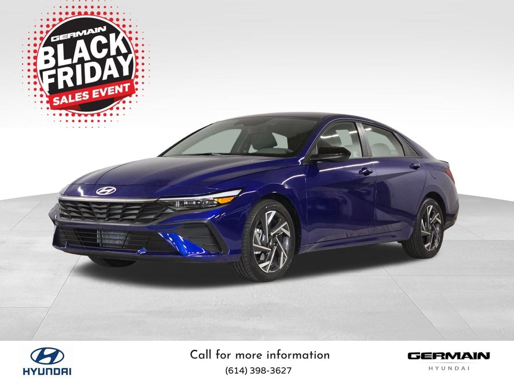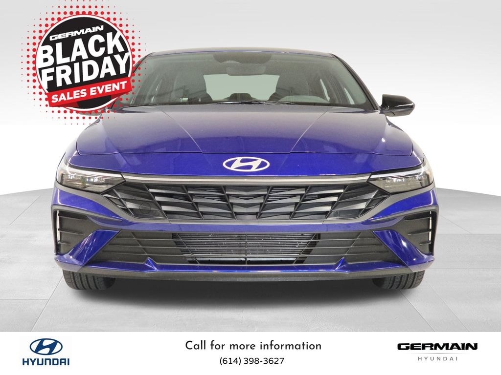 2025 Intense Blue Hyundai Elantra SEL Sport I4 FWD 17" x 7.0J Alloy Wheels, 4-Wheel Disc Brakes, 6 Speakers, ABS brakes, Air Conditioning, Alloy wheels, AM/FM radio, Apple CarPlay & Android Auto, Auto High-beam Headlights, Automatic temperature control, Brake assist, Bumpers: body-color, Carpeted Floor Mats, Delay-off headlights, Driver door bin, Driver vanity mirror, Dual front impact airbags, Dual front side impact airbags, Electronic Stability Control, Exterior Parking Camera Rear, Front anti-roll bar, Front Bucket Seats, Front Center Armrest, Front dual zone A/C, Front reading lights, Front wheel independent suspension, Fully automatic headlights, Illuminated entry, Leather Shift Knob, Leather steering wheel, Low tire pressure warning, Occupant sensing airbag, Option Group 01, Outside temperature display, Overhead airbag, Overhead console, Panic alarm, Passenger door bin, Passenger vanity mirror, Power door mirrors, Power steering, Power windows, Premium Cloth Seat Trim, Radio: AM/FM/HD Display Audio, Rear side impact airbag, Rear window defroster, Remote keyless entry, Security system, Speed control, Speed-sensing steering, Spoiler, Steering wheel mounted audio controls, Tachometer, Telescoping steering wheel, Tilt steering wheel, Traction control, Trip computer, Variably intermittent wipers.