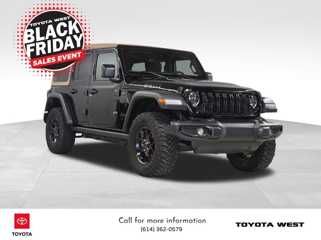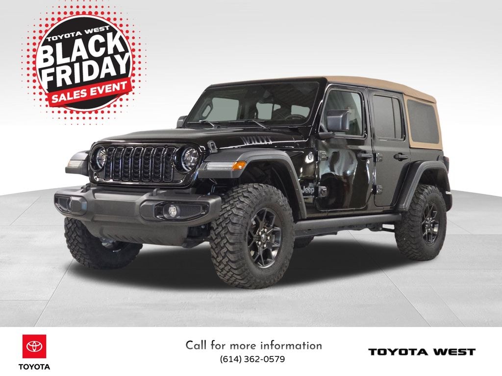 110 MPH Vehicle Max Speed Calibration, 2-Door Passive Entry, Front Door Locks, 240 Amp Alternator, 4-Wheel Disc Brakes, 4-Wheel Drive Swing Gate Decal, 7 & 4 Pin Wiring Harness, 8 Speakers, 97 MPH Vehicle Max Speed Calibration, ABS brakes, Advanced Brake Assist, Air Conditioning, Air Conditioning w/Auto Temperature Control, Air Filtering, Alpine Premium Audio System, AM/FM radio, Apple CarPlay/Android Auto, Auto High Beam Headlamp Control, Automatic Headlamps, Aux Battery, Auxiliary Switches, Black 3-Piece Hard Top, Black Grille, Blind Spot & Cross Path Detection, Brake assist, Class II Receiver Hitch, Cloth Low-Back Bucket Seats, Cluster 7.0" TFT Color Display, Compass, Convenience Group, Conventional Differential Front Axle, Corning Gorilla Glass, Dana M210 Wide HD Tube Front Axle, Dana M220 Wide Rear Axle, Daytime Running Lamps LED Accents, Deep Tint Sunscreen Windows, Delay-off headlights, Driver door bin, Driver vanity mirror, Dual front impact airbags, Dual front side impact airbags, E-Locker Rear Axle, Electronic Stability Control, Emergency/Assistance Call, Enhanced Adaptive Cruise Control, Freedom Panel Storage Bag, Front 1-Touch Down Power Windows, Front anti-roll bar, Front Bucket Seats, Front Center Armrest w/Storage, Front fog lights, Front LED Fog Lamps, Front reading lights, Full Speed Forward Collision Warning Plus, Heated Front Seats, Heated Steering Wheel, Injection Molded Black Rear Bumper, Integrated roll-over protection, LED Premium Reflector Headlamps, LED Taillamps, Low tire pressure warning, Mold In Color Bumper w/Gloss Black, Molded in Color Rubicon Highline Flare, MOPAR All-Weather Floor Mats, No Soft Top, Non-Lock Fuel Cap w/o Discriminator, Normal Duty Suspension, Occupant sensing airbag, Off-Road Plus Mode, Outside temperature display, Overhead airbag, ParkSense Rear Park Assist System, ParkView Rear Back-Up Camera, Passenger door bin, Passenger vanity mirror, Power Heated Mirrors, Power steering, Premium Wrapped Steering Wheel, Quick Order Package 22W Willys, Radio data system, Radio: Uconnect 5 w/12.3" Display, Rear anti-roll bar, Rear reading lights, Rear Window Defroster, Rear Window Wiper/Washer, Remote Keyless Entry, Remote Start System, Safety Group, Security Alarm, Speed control, Speed Sensitive Power Locks, Split folding rear seat, Steering wheel mounted audio controls, Stop-Start Dual Battery System, Sun Visors w/Illuminated Vanity Mirrors, Tachometer, Technology Group, Telescoping steering wheel, Tilt steering wheel, Traction control, Trip computer, Universal Garage Door Opener, Variably intermittent wipers, Wheels: 17" x 7.5" Black Steel Styled, Wheels: 17" x 7.5" Painted Black, Willy's Suspension, Willys, Willys Hood Decal. Priced below KBB Fair Purchase Price! Black Clearcoat 2.0L I4 DOHC 8-Speed Automatic