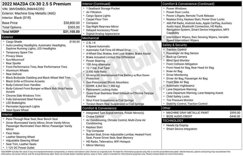2022 Machine Gray Metallic Mazda CX-30 2.5 S Premium Package AWD SKYACTIV® 2.5L 4-Cylinder DOHC 16V