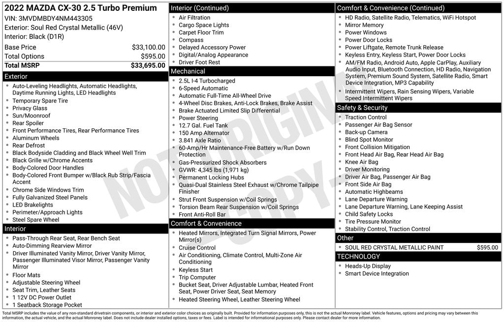 2022 Soul Red Crystal Metallic Mazda CX-30 2.5 Turbo Premium Package AWD 2.5L I4