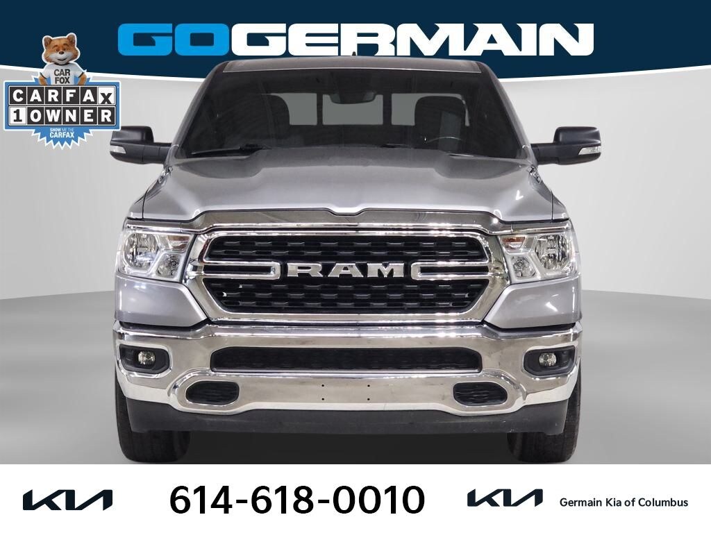 Backup Camera, Bluetooth, 3 Rear Seat Head Restraints, 4 Way Front Headrests, 4-Wheel Disc Brakes, 48V Belt Starter Generator, 4G LTE Wi-Fi Hot Spot, 6 Speakers, 8.4" Touchscreen Display, ABS brakes, Air Conditioning, Alloy wheels, AM/FM radio, Apple CarPlay, Auto-Dimming Exterior Driver Mirror, Auto-Dimming Rear-View Mirror, Bed Utility Group, Big Horn Badge, Big Horn Level 1 Equipment Group, Black Exterior Mirrors, Black Premium Power Mirrors, Bluetooth Handsfree Phone & Audio, Brake assist, Bumpers: chrome, Class IV Receiver Hitch, Cloth Bench Seat, Compass, Connectivity - US/Canada, Convex Wide-Angle Mirror Insert, Delay-off headlights, Driver door bin, Dual front impact airbags, Dual front side impact airbags, Electronic Stability Control, Emergency communication system: SiriusXM Guardian, Exterior Mirrors Courtesy Lamps, Exterior Mirrors w/Heating Element, Exterior Mirrors w/Supplemental Signals, For Details, Visit DriveUconnect.com, For More Info, Call 800-643-2112, Front anti-roll bar, Front Center Armrest w/Storage, Front reading lights, Front Seat Back Map Pockets, Front wheel independent suspension, Fully automatic headlights, Global Telematics Box Module (TBM), Glove Box Lamp, Google Android Auto, GPS Antenna Input, Heated door mirrors, Illuminated entry, Integrated Center Stack Radio, Integrated Voice Command w/Bluetooth, Leather steering wheel, Low tire pressure warning, Manual Adjust 4-Way Front Passenger Seat, MOPAR 4 Adjustable Cargo Tie-Down Hooks, MOPAR Deployable Bed Step, MOPAR Spray In Bedliner, Occupant sensing airbag, Outside temperature display, Overhead airbag, Overhead console, Panic alarm, ParkView Rear Back-Up Camera, Passenger door bin, Passenger vanity mirror, Pick-Up Box Lighting, Power 2-Way Driver Lumbar Adjust, Power 8-Way Driver Seat, Power Adjustable Pedals, Power door mirrors, Power steering, Power windows, Power-Folding Mirrors, Quick Order Package 23Z Big Horn, Radio data system, Radio: Uconnect 3 w/5" Display, Radio: Uconnect 5 W w/8.4" Display, Rear 60/40 Folding Seat, Rear Dome w/On/Off Switch Lamp, Rear Power Sliding Window, Rear seat center armrest, Rear step bumper, Rear Window Defroster, Remote keyless entry, SiriusXM Radio Service, SiriusXM Satellite Radio, Speed control, Split folding rear seat, Steering wheel mounted audio controls, Sun Visors w/Illuminated Vanity Mirrors, Tachometer, Telescoping steering wheel, Tilt steering wheel, Traction control, Trip computer, Universal Garage Door Opener, USB Host Flip, Variably intermittent wipers, Voltmeter. CARFAX One-Owner.