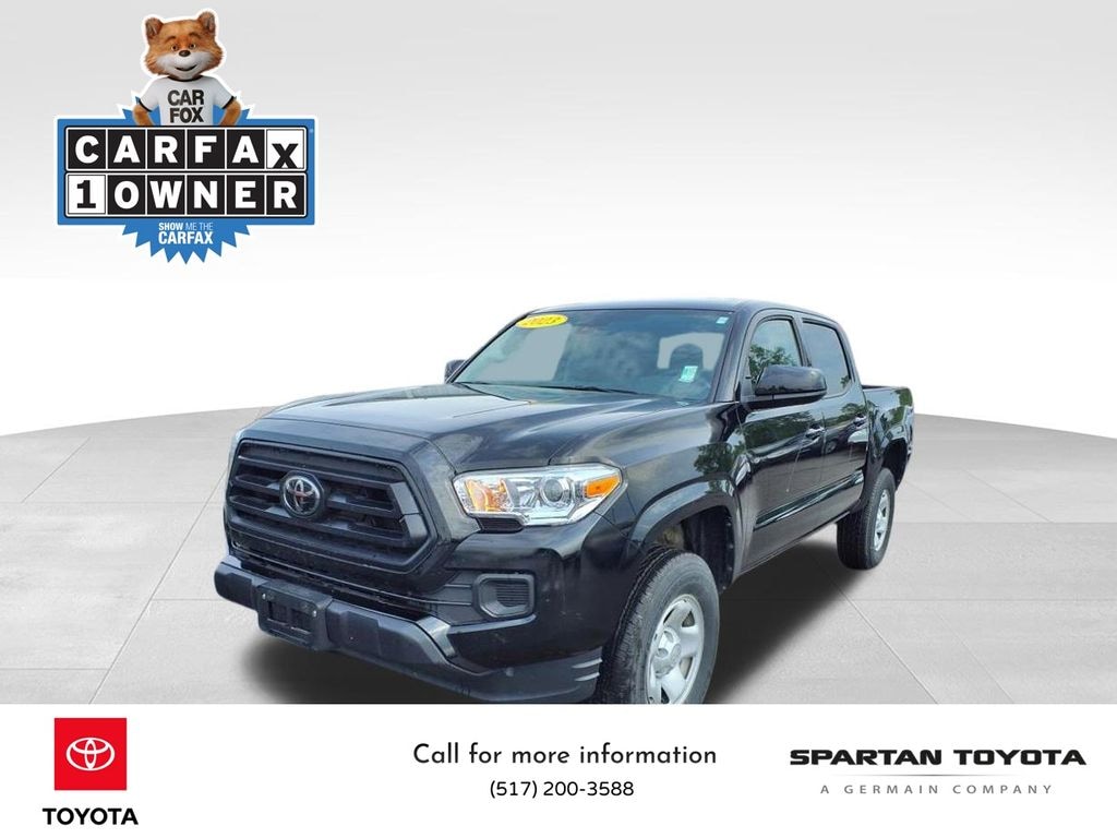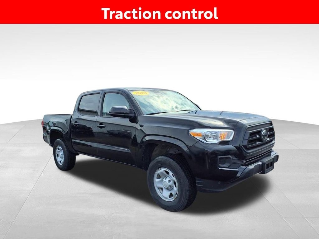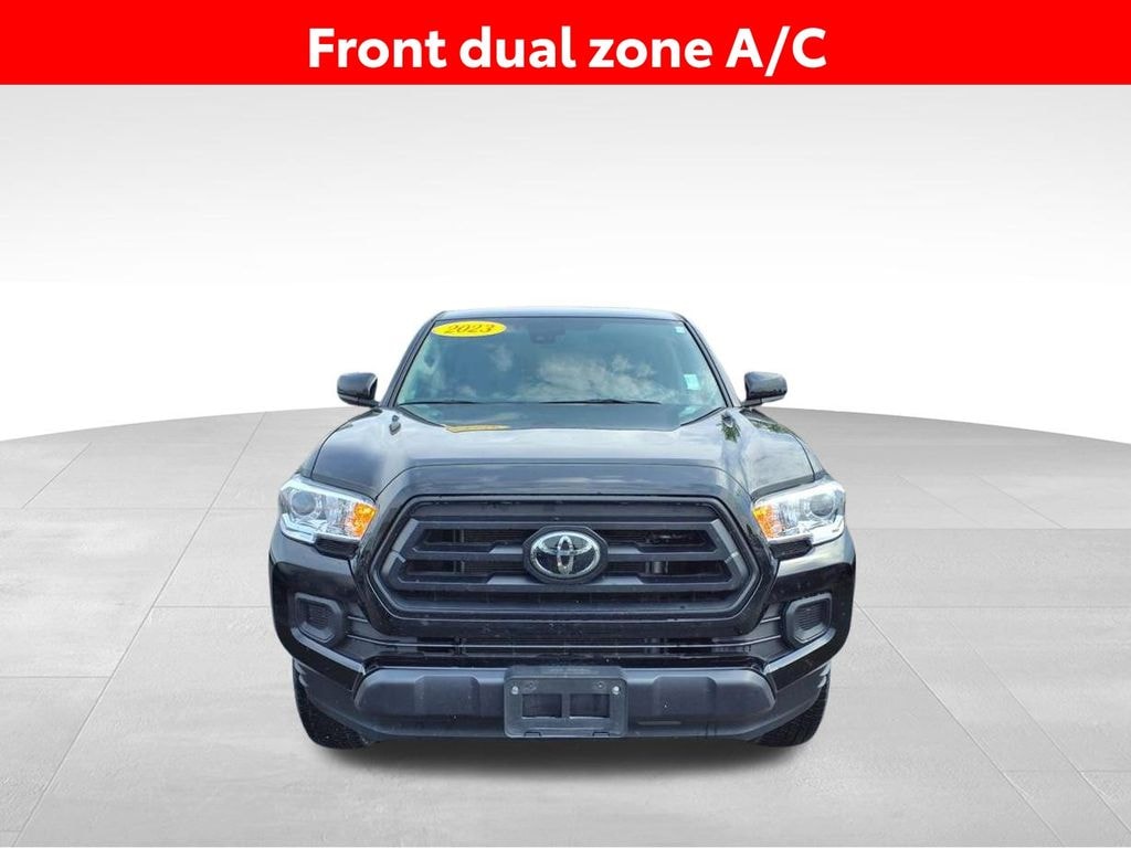 2023 Black Toyota Tacoma SR 4WD ABS brakes, Active Cruise Control, Electronic Stability Control, Front dual zone A/C, Heated door mirrors, Illuminated entry, Low tire pressure warning, Traction control.