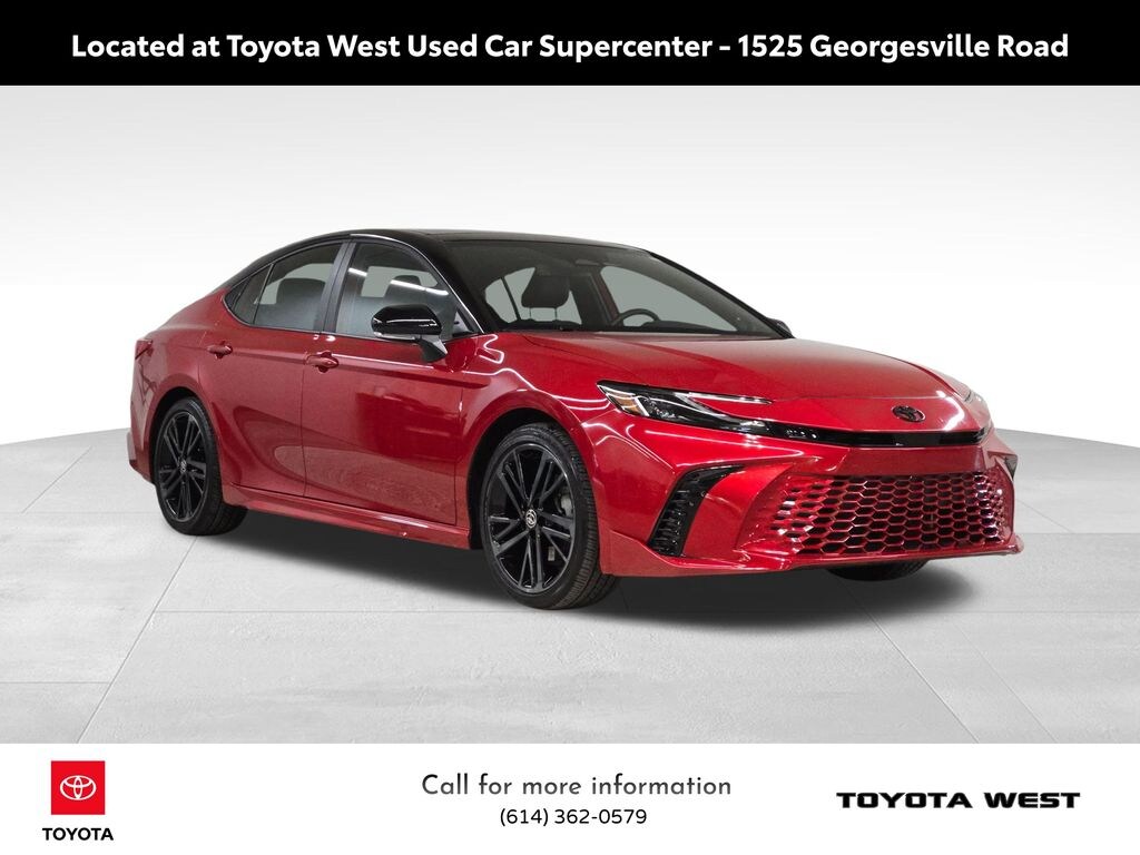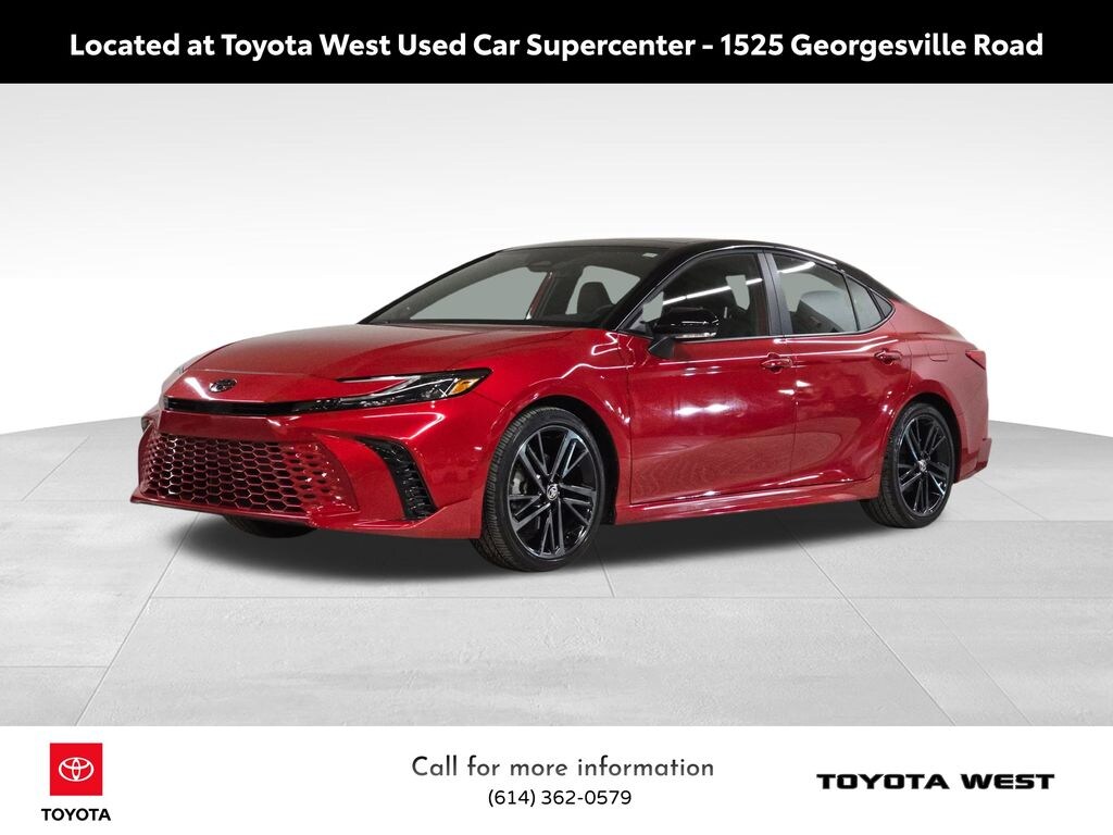 2.5L 4-Cylinder 16V DOHC, Black Leather, 4-Wheel Disc Brakes, 6 Speakers, ABS brakes, Air Conditioning, Alloy wheels, AM/FM radio: SiriusXM, Apple CarPlay/Android Auto, Auto High-beam Headlights, Auto-dimming Rear-View mirror, Automatic temperature control, Brake assist, Bumpers: body-color, Delay-off headlights, Driver door bin, Driver vanity mirror, Dual front impact airbags, Dual front side impact airbags, Electronic Stability Control, Emergency communication system: Safety Connect (up to 10-year trial subscription), Exterior Parking Camera Rear, Four wheel independent suspension, Front anti-roll bar, Front Bucket Seats, Front Center Armrest, Front dual zone A/C, Front reading lights, Fully automatic headlights, Garage door transmitter: HomeLink, Heated door mirrors, Heated Front Bucket Seats, Heated front seats, Heated steering wheel, Illuminated entry, Knee airbag, Leather Seat Trim, Leather Shift Knob, Leather steering wheel, Low tire pressure warning, Occupant sensing airbag, Outside temperature display, Overhead airbag, Overhead console, Panic alarm, Passenger door bin, Passenger vanity mirror, Power door mirrors, Power driver seat, Power passenger seat, Power steering, Power windows, Radio data system, Radio: Toyota Audio Multimedia w/12.3" Touchscreen, Rear anti-roll bar, Rear reading lights, Rear seat center armrest, Rear side impact airbag, Rear window defroster, Remote keyless entry, Security system, Speed control, Speed-sensing steering, Split folding rear seat, Spoiler, Steering wheel mounted audio controls, Telescoping steering wheel, Tilt steering wheel, Traction control, Trip computer, Turn signal indicator mirrors, Variably intermittent wipers, Wheels: 19" Smoke Gray & Black-Finished Alloy, 2.5L 4-Cylinder 16V DOHC, Black Leather. Supersonic Red 2.5L 4-Cylinder 16V DOHC eCVT