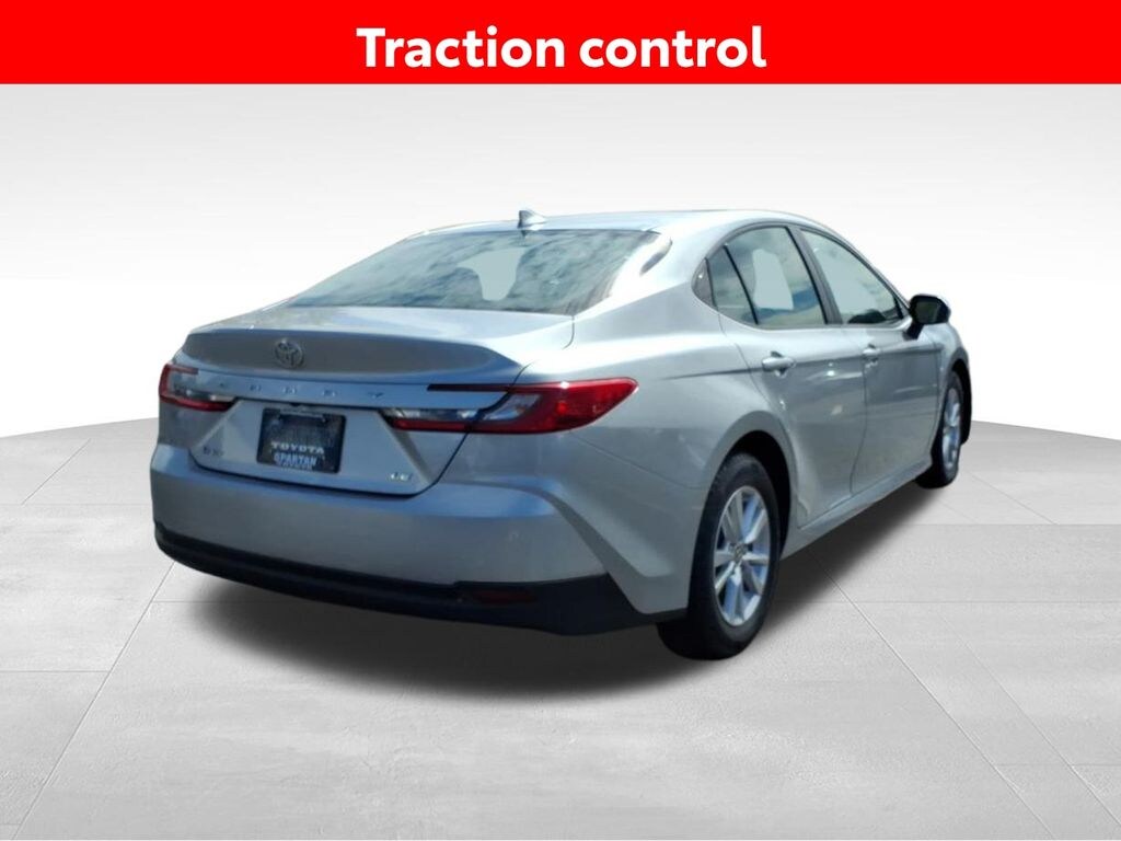 2025 Silver Toyota Camry SE FWD ABS brakes, Active Cruise Control, Alloy wheels, Electronic Stability Control, Front dual zone A/C, Heated door mirrors, Illuminated entry, Low tire pressure warning, Remote keyless entry, Traction control.